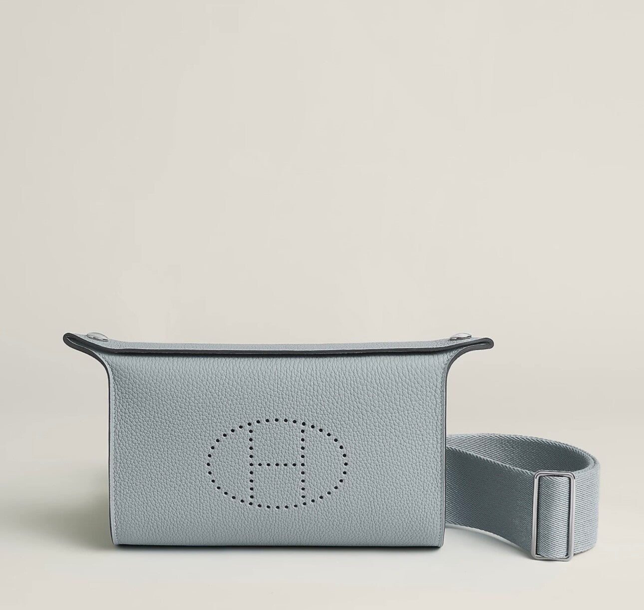 Brand New Hermes Videpoches Bag color in bleu glacier. Bag is in togo calfskin. This bag has adjustable plain wooly canvas shoulder strap and can be worn over the shoulder or across the body.