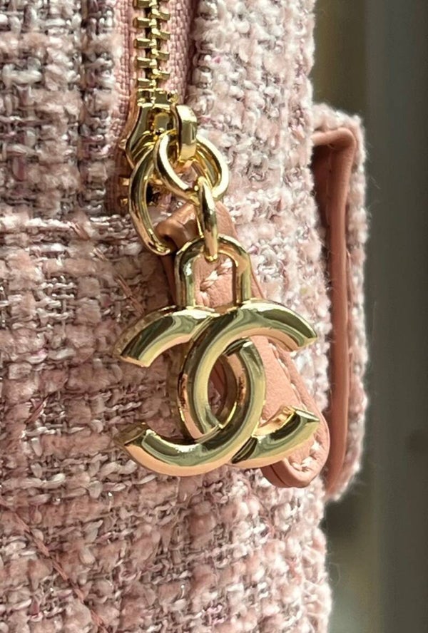 GWP Brand New Chanel Soft Pink Tweed Backpack with GHW