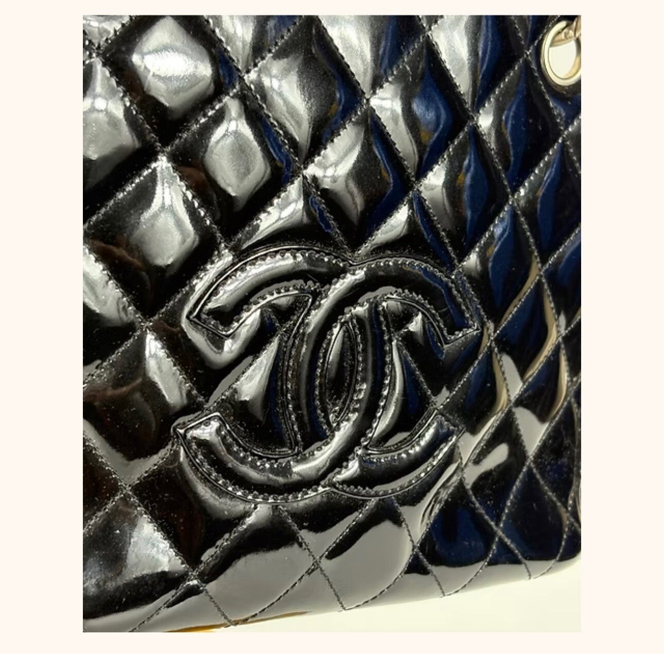 Preloved, but in excellent condition. Chanel patent leather handbag. This bag has very minimal scratches, no stains or markings. This bag comes with a dust bag and authenticity card.