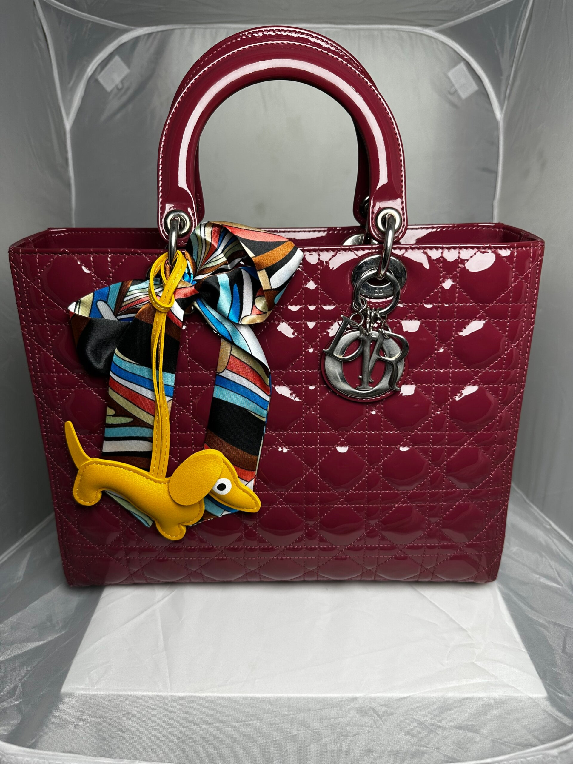 Christian Dior Large Lady Dior Patent Leather Tote in Burgundy